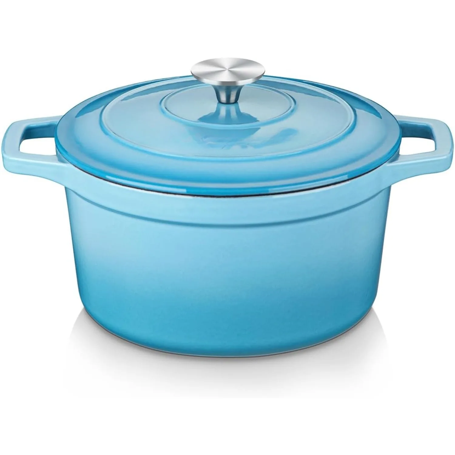 This blue enamel Dutch oven is designed for home cooks who want dependable performance and timeless style in one compact piece. With a 2.5‑quart capacity, it’s the perfect size for small‑batch meals, side dishes, artisan bread, and everyday family cooking. Crafted from high‑purity cast iron and finished with a smooth, natural non‑stick enamel coating, it resists acidic and alkaline ingredients, making it ideal for marinating, simmering, roasting, and serving.